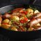 Vegetable skillets are not only very healthy, but can also taste very delicious! In our recipe, bratwurst are the extra that makes the potato skillet even tastier! Try it out!