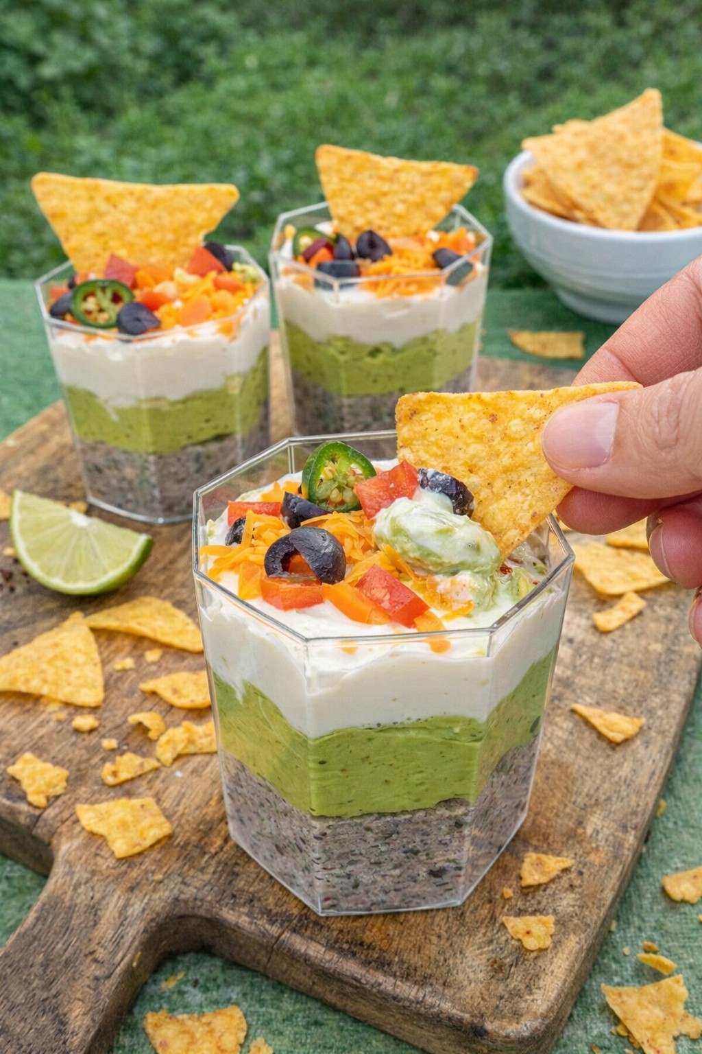 These layered cups take everything people love about the classic dip and turn it into a mess-free, grab-and-go treat. No more hovering over one big dish or worrying about double-dipping. Everyone gets their own perfectly layered bite, and honestly, it just feels a little more special that way.