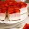 spoon the strawberry cream over the cake in the tin and level it out. Place in the refrigerator for further preparation, so that the mixture will set a little.