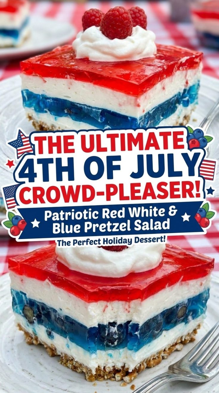 This Patriotic Pretzel Salad is more than just a dessert—it’s a conversation starter, a crowd-pleaser, and the kind of recipe people will ask you for again and again. One bite, and you’ll see why it’s destined to become a holiday tradition.